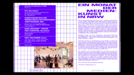 In Workshops, Performances, Präsentationen, Talks und urbanen Spaziergängen wurde sich an fünf aufeinander folgenden Wochenenden in Düsseldorf, Köln, Havixbeck (bei Münster) und Essen mit aktuellen Debatten im Spannungsfeld von Kunst und Technologie beschäftigt und diese gemeinsam in einen größeren gesellschaftspolitischen Kontext gestellt. Ausgangspunkt waren die geförderten Projekte aus den Programmen Medienkunstfonds und Medienkunstfellows des Landes NRW. Die Veranstaltungsreihe wurde in einem Magazin dokumentiert. (Text: Medienwerk)