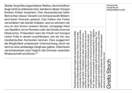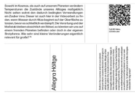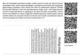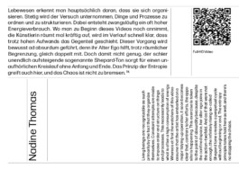 Junge Künstler:innen haben sich ausgehend von physikalischen Phänomenen mit Dimensionen in Zeit und Raum befasst. Der gemeinsame Nenner beider Disziplinen ist, dass Modelle, Methoden, Geräte und Kameras von großen Maßstäben bis in den Nanobereich schauen, um räumliche und zeitliche Skalensprünge bildlich erfahrbar zu machen. Die multimedialen Kunstwerke bewegen sich unterschiedlich schnell von kleinen in große Welten und zurück und wurden auf dem Campus Stadt der TU Dortmund im Dortmunder U erstmals in einer Ausstellung der breiteren Öffentlichkeit vorgestellt. (Text: Dortmunder U)